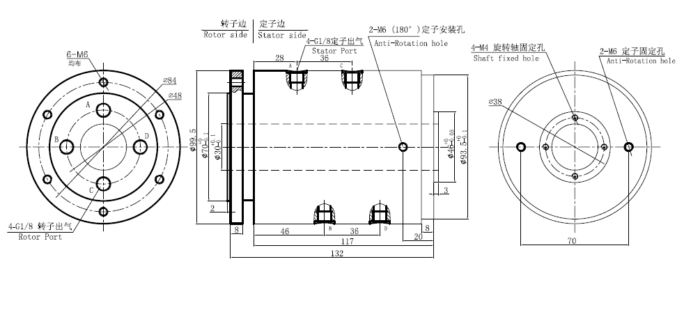 MJ4030系列 (中空30mm, 4進(jìn)4出, 中空氣液旋轉(zhuǎn)接頭,氣滑環(huán),液壓滑環(huán))